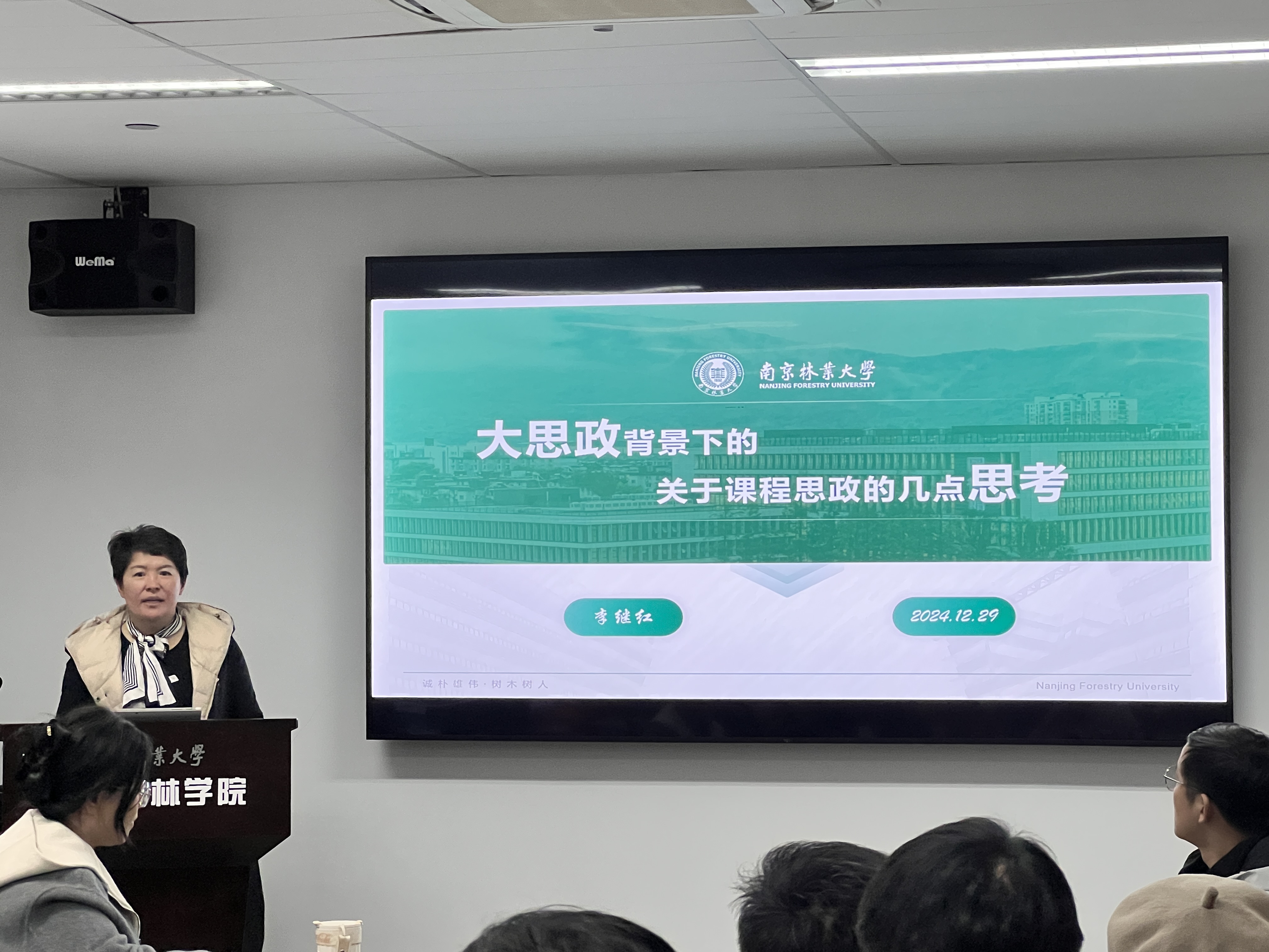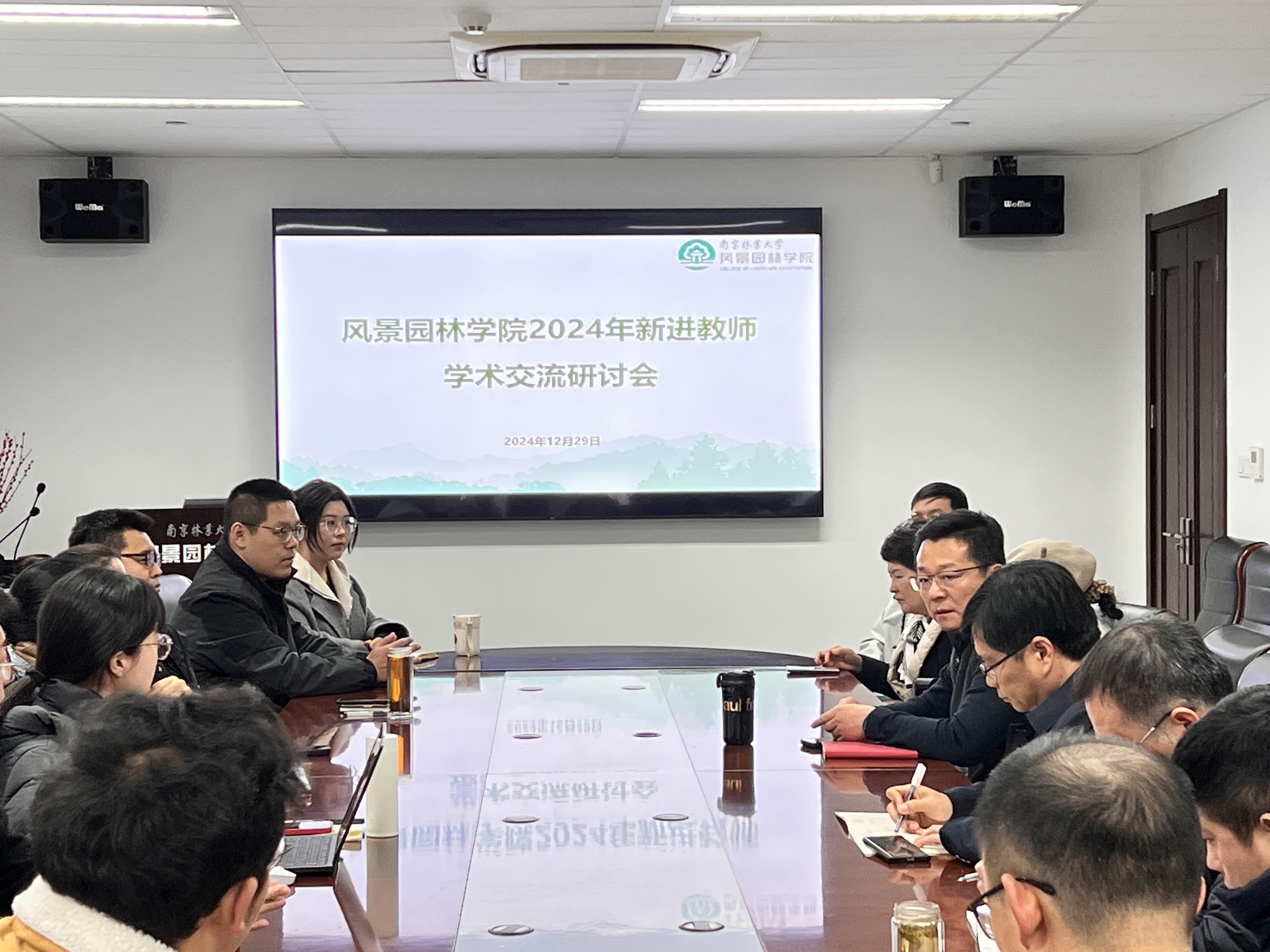 13名新入职教师就自己的研究方向和前沿问题进行了学术交流。他们分享了不同领域中风景园林的实践和应用,共同探索未来在大学生 的研究目标。会议还特别邀请了李继红老师作了题为“大思政背景下的关于课程思政的几点思考”主题讲座。她结合自身丰富的教学和实践案例,为新教师们提供了宝贵丰富的教学经验,强调了思政教育对学生成长及专业发展的重要性。