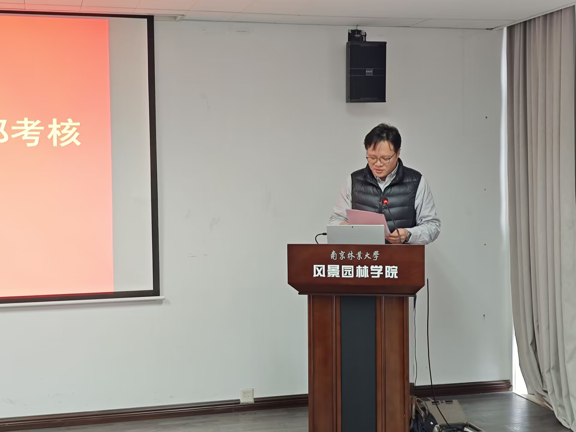 教职工大会上,院长邱冰为2023年学院目标管理考核中绩效任务完成突出的七位老师颁发证书。