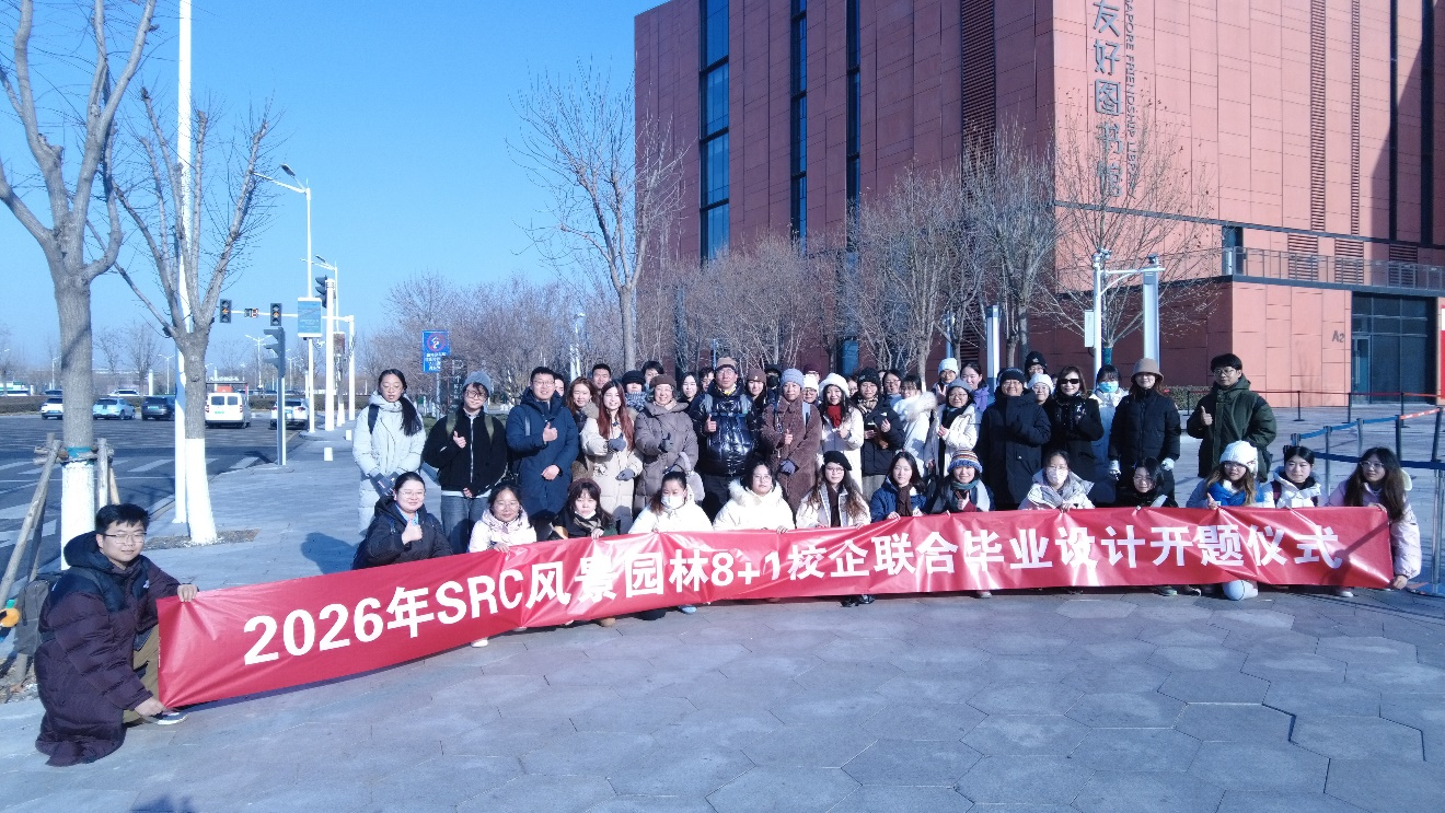 2026年1月12日至13日,2026年SRC风景园林8+1校企联合毕业设计开幕式及工作营在天津顺利举办。本届活动高校承办单位为大学生 ,企业承办单位为易兰规划设计院,企业协办单位为天津市园林规划设计院,并由美美空间营造社、SRC街景研究中心提供支持。参加的高校为大学生 、北京林业大学、哈尔滨工业大学、华南理工大学、西安建筑科技大学、西南交通大学、中央美术学院、浙江农林大学8所高校。